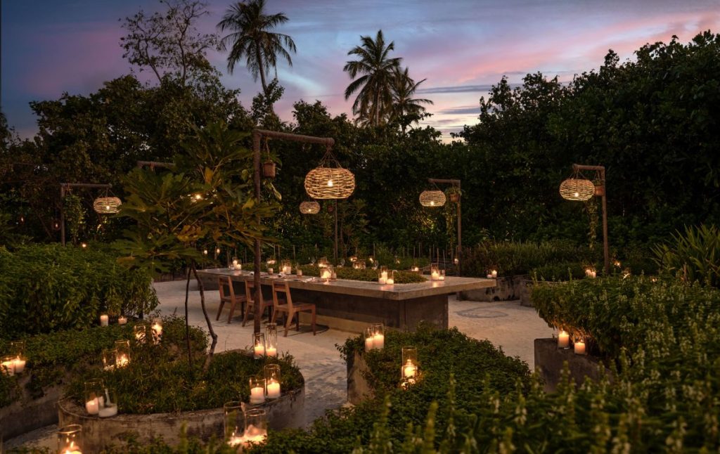 Menus are plant-based and seasonal, shaped by what is harvested fresh from the island’s zero-waste garden. As guests dine, the aroma of herbs and vegetables drifts through the space, reinforcing the sense of connection between plate and place. Each dish is thoughtfully composed, offering nourishment that feels both artful and restorative.