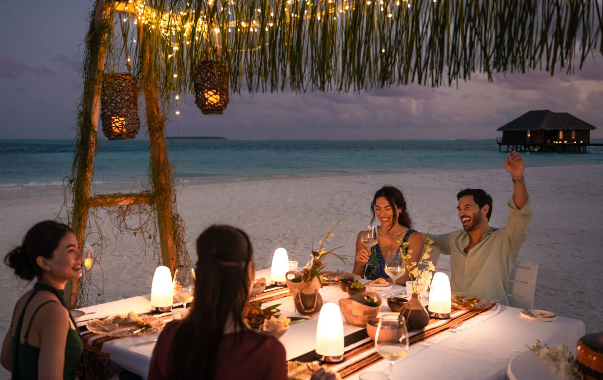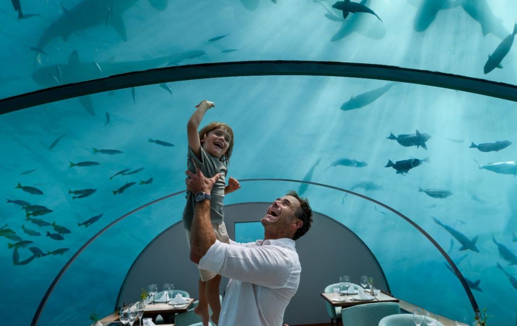 A lagoon journey between the two islands transforms what might seem like a simple transfer into something far more cinematic. As the boat glides across shifting shades of blue, the experience reveals the layered identity of the destination, from vibrant coral gardens to architectural icons rising quietly from the sea. Passing landmarks such as the Spa Retreat, Rangali Ocean Pavilion, and the world’s first underwater residence, The Muraka, the narrative becomes one of both natural wonder and human imagination.