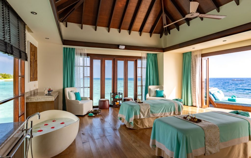 The spa itself feels less like a destination and more like a gentle transition. Overwater treatment villas open to uninterrupted horizons, while garden suites are cocooned in tropical stillness, each space designed to dissolve the boundary between body and environment. Treatments draw from the elemental forces of nature, wind, water, fire, earth, and wood, translating them into tactile rituals that work as much on the senses as they do on the physical body. Botanical oils, mineral-rich formulations, and precise, unhurried techniques come together to create an experience that lingers well beyond the treatment room.