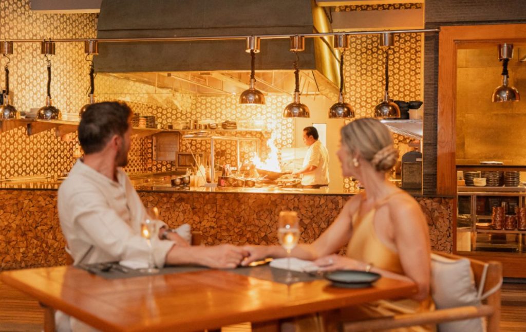 Above the waterline, FIRE shifts the mood. This teppanyaki restaurant places guests directly around the action, where chefs work with rhythm and restraint rather than flourish. Flames rise, blades move with confidence, and ingredients are prepared in full view, turning dinner into a shared moment rather than a performance.