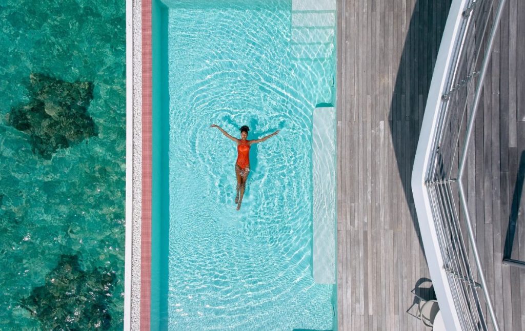 The Two-Bedroom Water Residence offers an expansive 14.3-metre infinity pool and a rooftop terrace built for entertaining—perfect for families or small groups who want the freedom to gather without leaving their private, overwater world.
