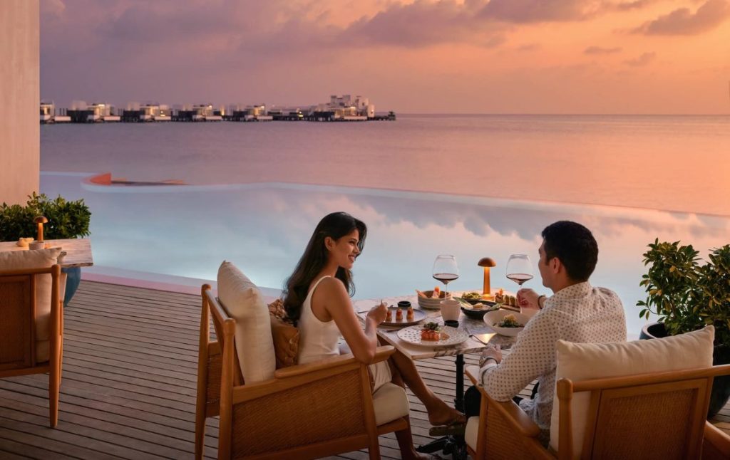 Beyond the dining rooms, the resort curates a series of memorable island experiences: secluded sandbank breakfasts, private sunset picnics, bespoke yoga sessions, and relaxed beachside BBQs. Guests can explore the underwater world on a semi-submarine adventure or dive into creativity at the MURACA Art Studio, where workshops encourage them to craft their own island-inspired keepsakes.