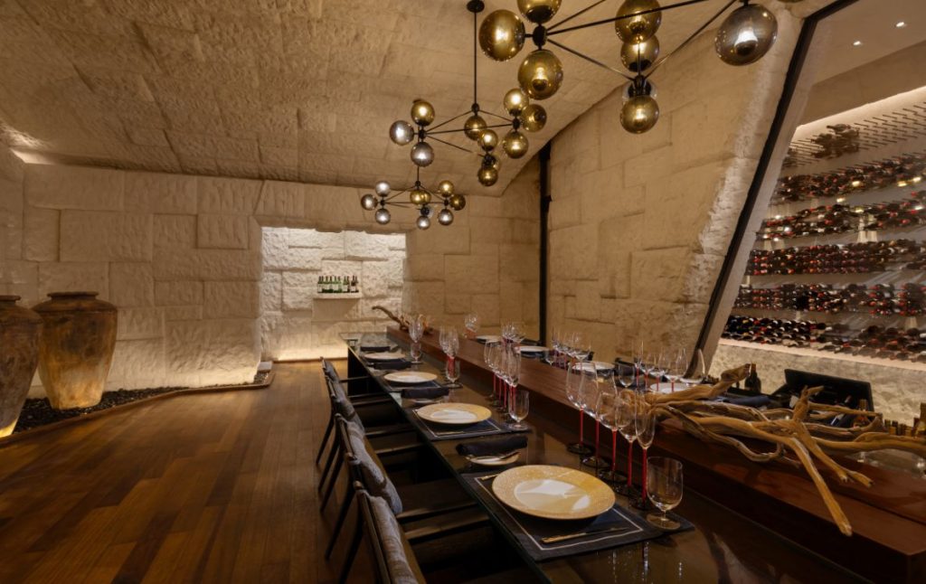 The Rock is the resort’s most exclusive experience: a single limestone chamber reserved for one party each evening. Guests dine around a 200-year-old Jarrah wood table while a dedicated chef and sommelier guide a private tasting menu paired with rare bottles from the resort’s extensive cellar.