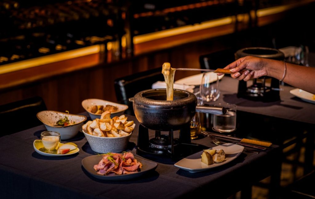 World-class cheeses are melted into fondue or presented as curated tapas boards of bread, pickles, and cured meats, each paired with complementary fine wines and Champagne. It is indulgence rendered intimate, a counterpoint to the island’s more theatrical dining venues.
