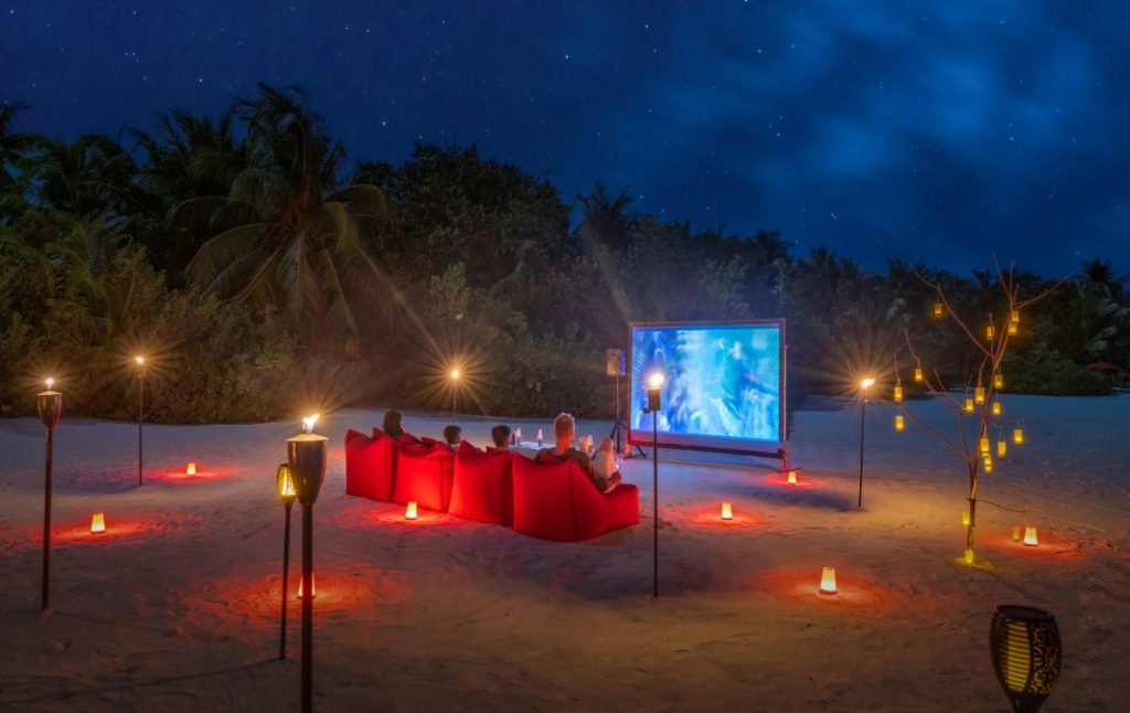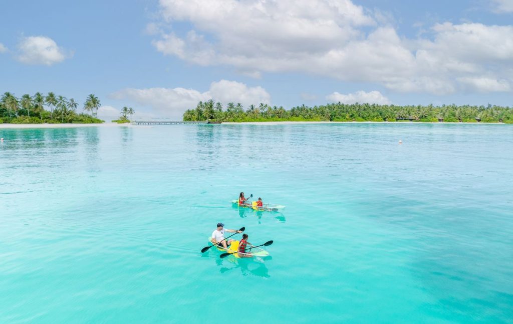 Beyond the kids’ club, the island encourages shared moments. Families explore the lagoon together through snorkelling, kayaking, and paddleboarding, or join guided excursions including dolphin cruises, fishing trips, and island picnics. On land, cycling paths, beach games, and open-air cinema nights create a rhythm that feels relaxed and unforced, allowing memories to form naturally.